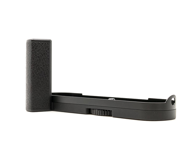 The Handgrip M from Leica is the basic handgrip for the Leica M Digital Rangefinder. It attaches to the camera's base plate and provides a stable grip for the right hand while shooting. It is particularly useful when shooting one-handed or while using heavier lenses in order to maintain stability. A textured black rubber surface provides a sure grip and a screw mount is available for the optional finger loops that can be attached for further control.
