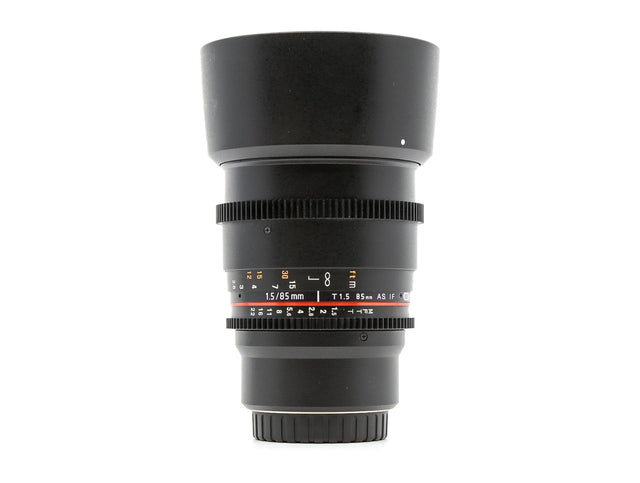 The Micro Four Thirds mount Rokinon 85mm T1.5 Cine AS IF UMC Lens is a prime telephoto lens designed for Micro Four Thirds cameras. Providing a 35mm-equivalent focal length of 170mm, this lens is well-suited to distant subjects, close-ups, and portraiture. Its fast T1.5 maximum aperture is further beneficial to working in low-light conditions and for greater control over selective focus and shallow depth of field effects.