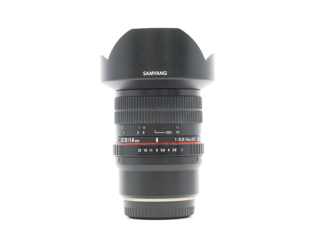 The Samyang 14mm f/2.8 IF ED UMC, X Mount is a manual focus, manual aperture, ultra-wide angle prime lens compatible with APS-C format mirrorless digital cameras. It provides a 93.9° angle of view which translates into a 35mm format focal length equivalency of 21mm.